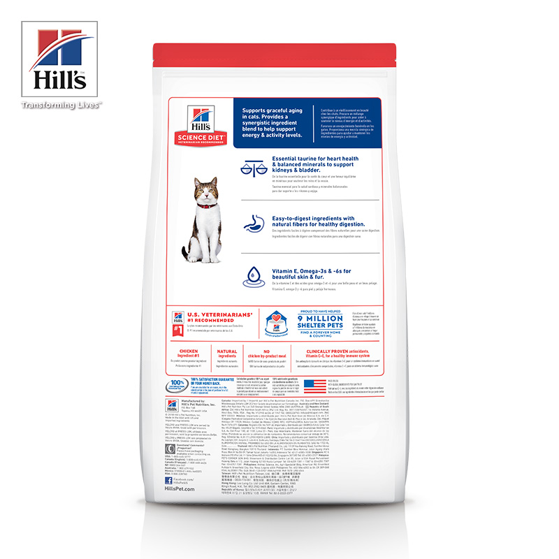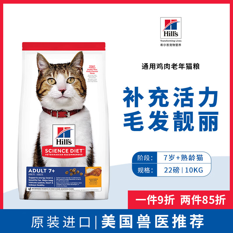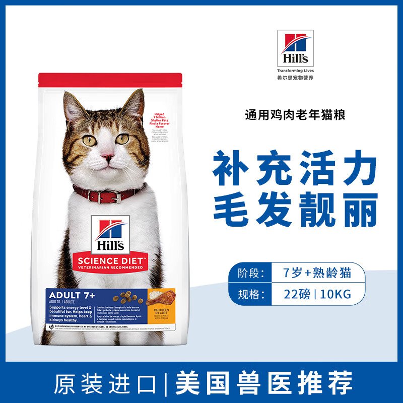 希尔思Hill‘s美国进口7岁以上猫咪专用粮高龄猫粮天然全价猫粮鸡肉味22磅/10KG