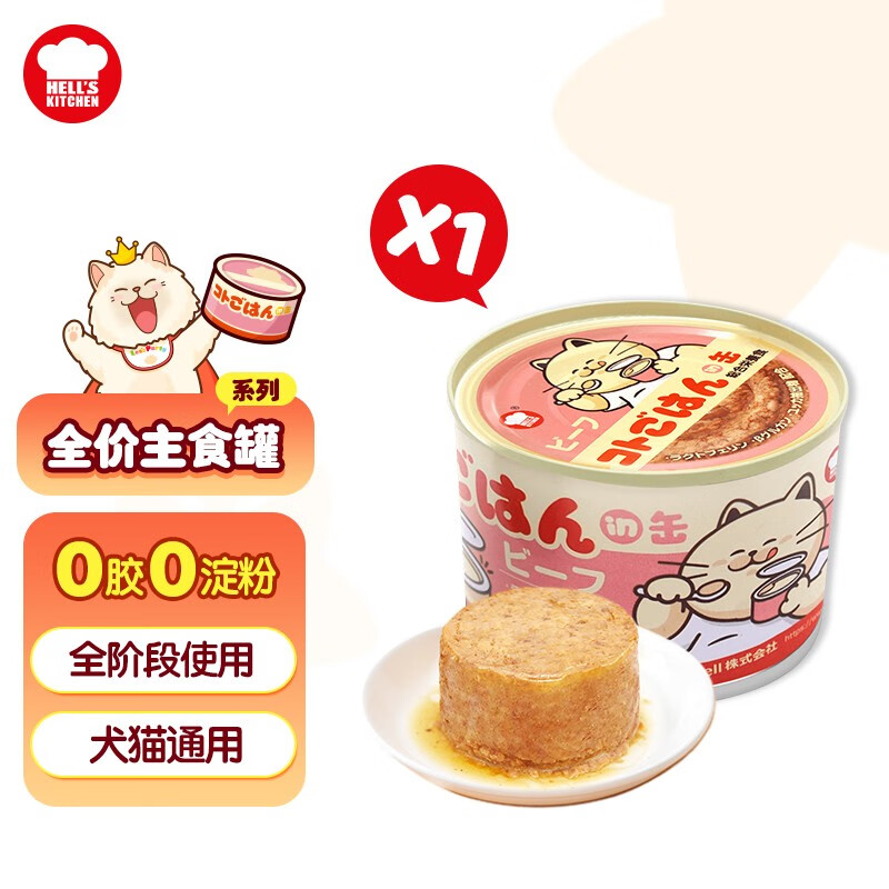 地狱厨房(Hell's Kitchen)全价主食罐头咕噜饭全猫成猫猫粮湿粮罐头 猫咪主食罐 170G 牛肉*1罐