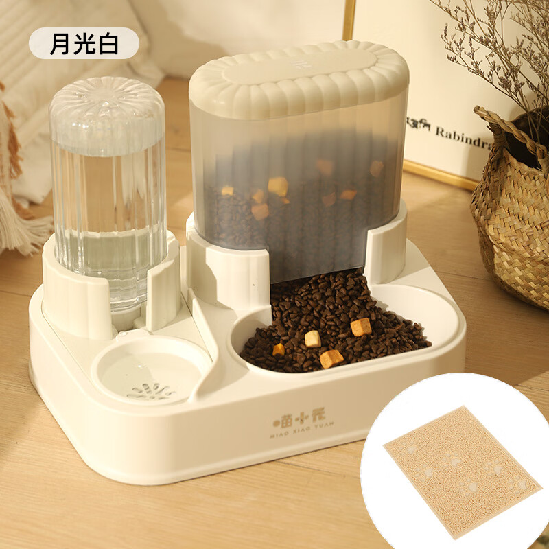 猫碗食盆双碗自动饮水喂食器一体狗狗猫咪喝水碗猫粮狗碗宠物用品 月光白【滤芯】 餐垫 猫狗通用加购收藏优先发货