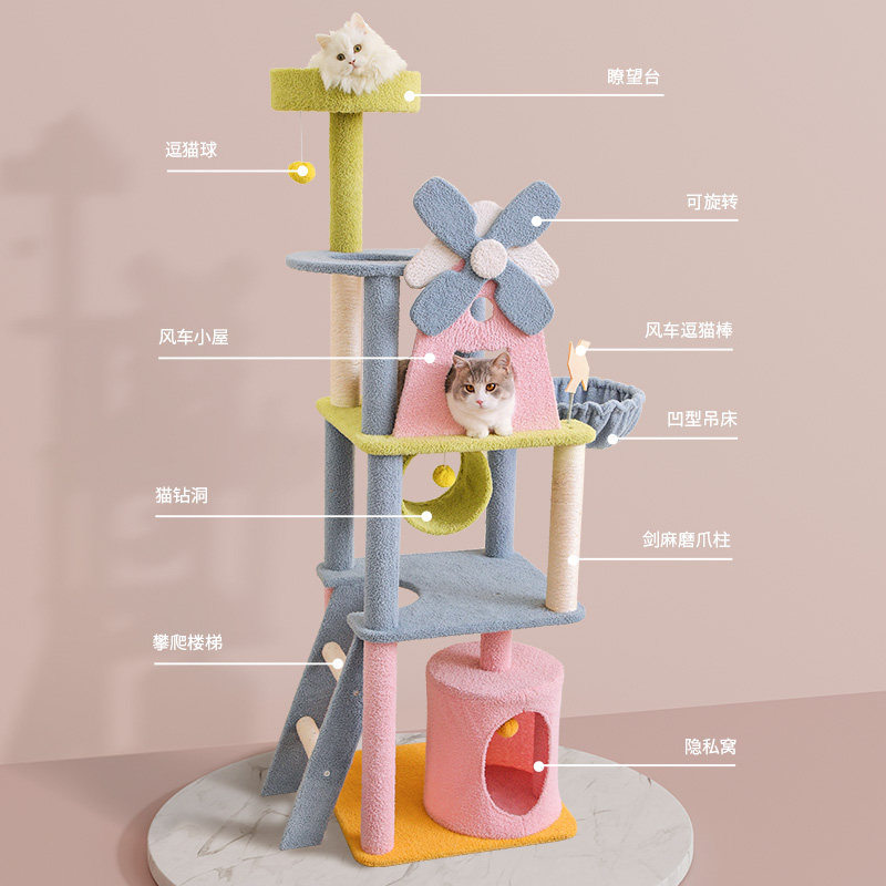 风车猫爬架大型猫咪猫窝树一体剑麻猫抓板猫玩具猫跳台抓柱猫架子
