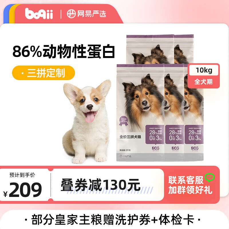 网易严选 狗粮全价三拼犬粮小型犬全期狗粮大型成犬幼犬通用2kg*5 【三拼狗粮】2kg*5袋