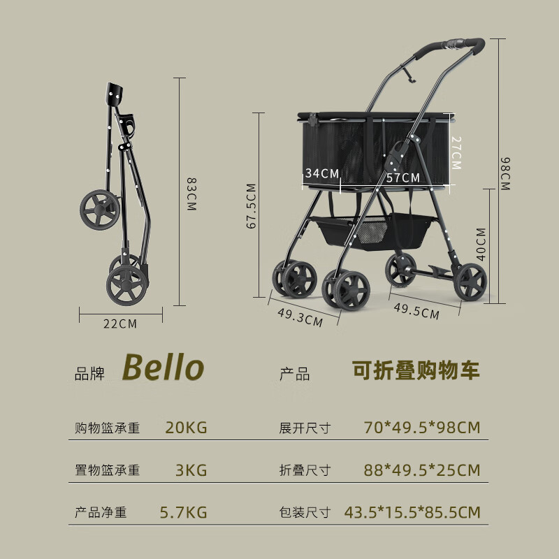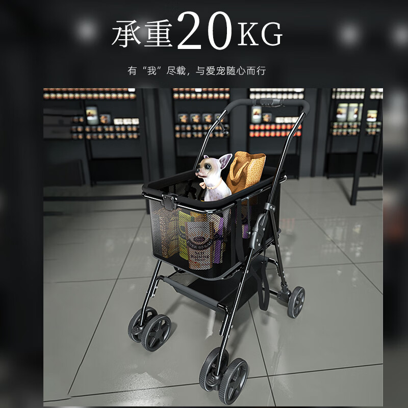 bello轻便可折叠宠物手推车推车狗狗猫咪包分离笼外出购物车宠物 黑色