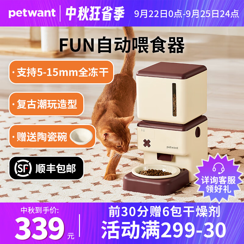 派旺自动喂食器猫碗陶瓷猫咪狗粮冻干宠物智能定时定量远程自助投食器 FUN喂食器-远程操控/支持冻干