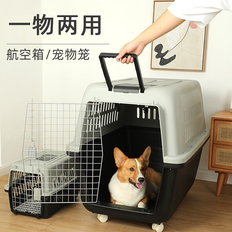 怡亲宠物航空箱猫太空舱猫咪外出用品狗航空箱特大号托运箱狗笼金毛外出便携式用品 1号箱-黑灰(12斤以内猫狗)48*32*30