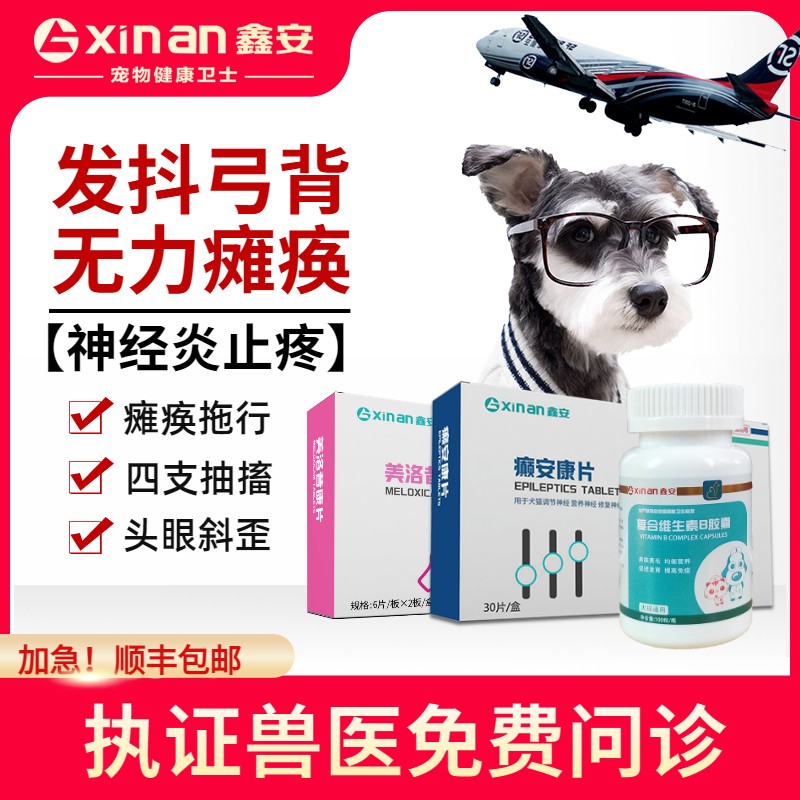 鑫安猫狗神经修复猫咪狗狗神经炎猫瘟犬瘟抽搐瘫痪宠物后腿无力癫痫药 神经止疼套餐(癫安康 美洛昔康 维生素B)