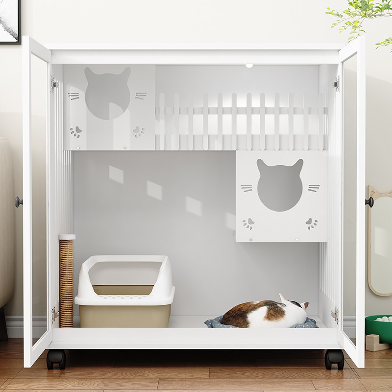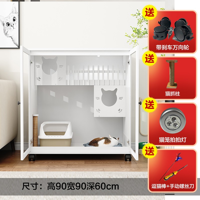 七夕旺猫笼子 实木生态猫别墅 猫笼木质 猫舍猫窝封闭式 防水可擦拭消毒 高90宽90深60白色