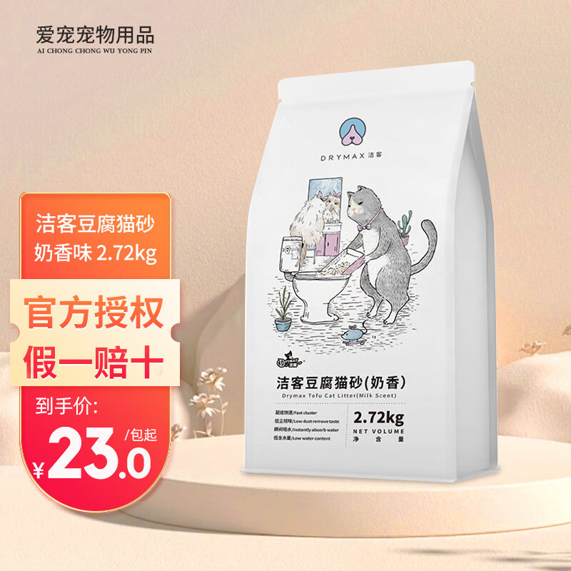 洁客猫砂 懒人猫砂混合猫砂绿茶豆腐猫砂除臭无尘易结团可冲马桶猫沙 【奶香】豆腐猫砂 2.72kg