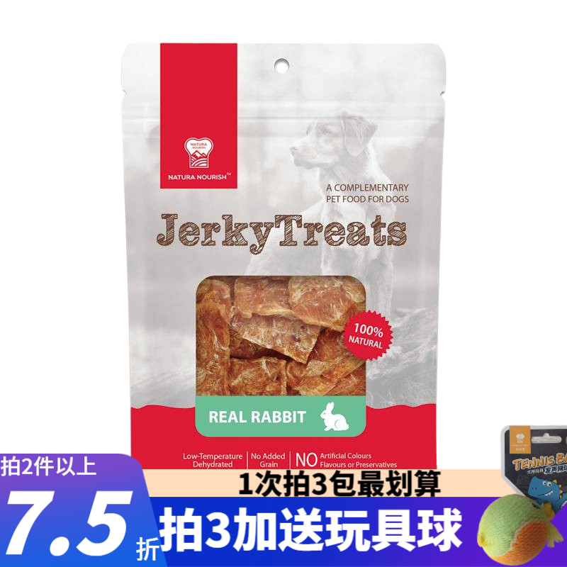 纳瑞施无添加狗零食牛肉鸡鸭肉干通用训练奖励磨牙柯基柴犬金毛博美泰迪 兔肉片100g