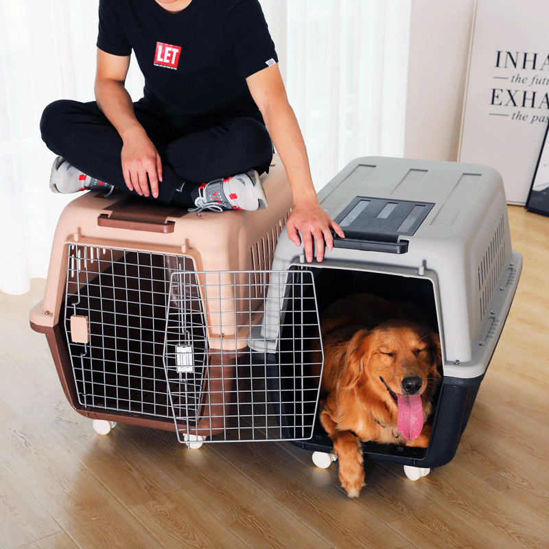 宠宝它 狗狗航空箱中型犬狗车后备箱狗笼运输宠物托运大型犬金毛拉杆箱 咖啡色(带隔尿板)拉杆带轮款 三号航空箱(建议40斤内)