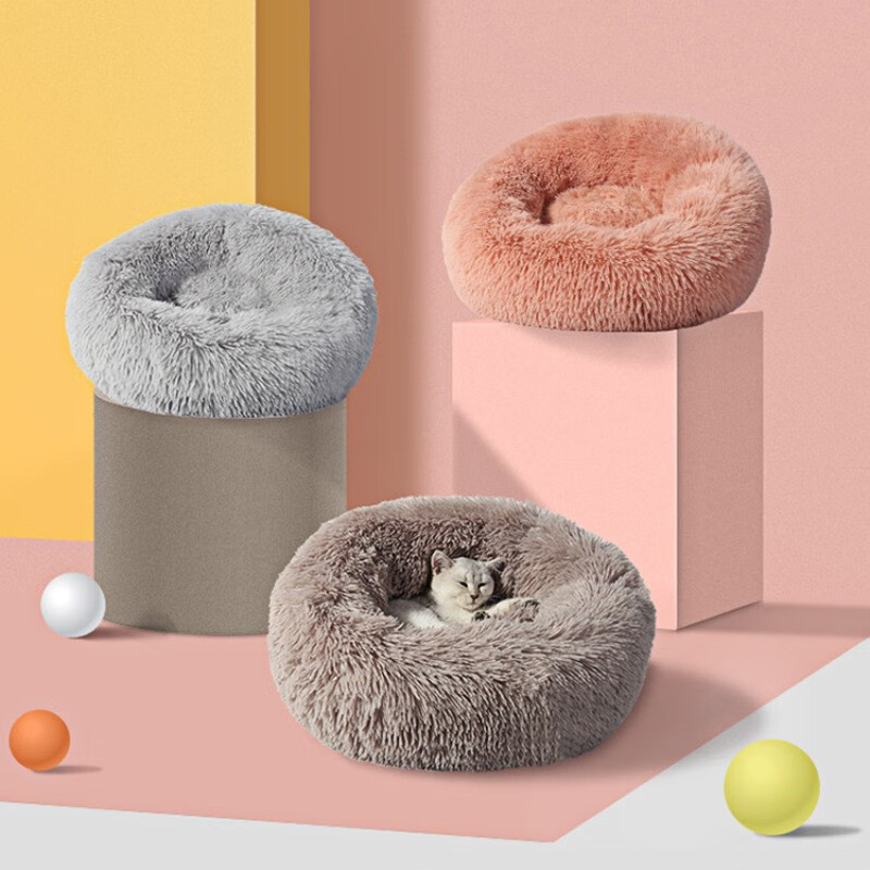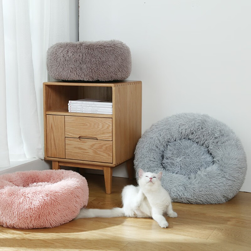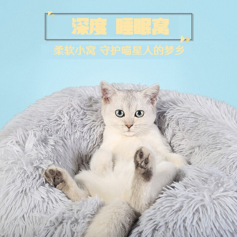 猫窝狗窝棉窝中小型犬狗窝泰迪比熊冬季保暖毛绒坐垫圆形宠物沙发睡垫 白色 S-直径50cm 8斤内适用