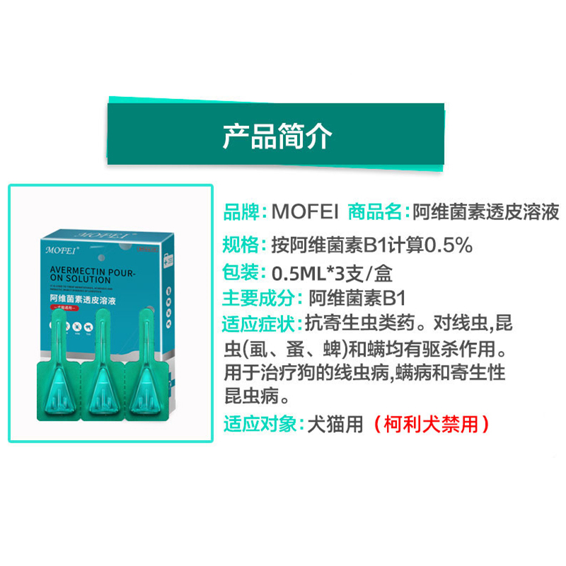 mofei犬猫体内外驱虫滴剂3支装 宠物去跳蚤虱子蜱虫大中小犬通用一体阿维菌素溶液0.5ml/支【柯利犬禁用】