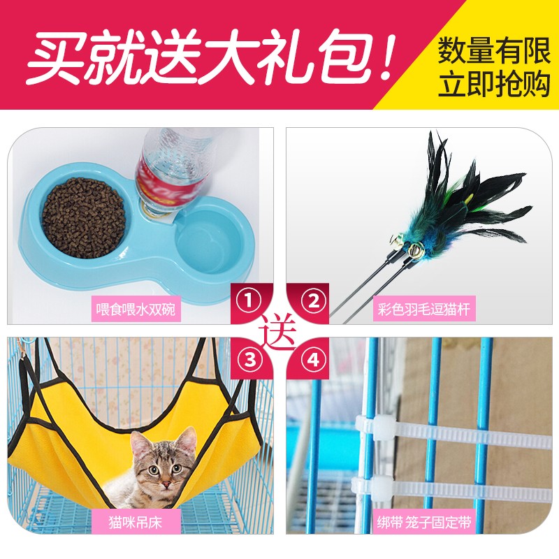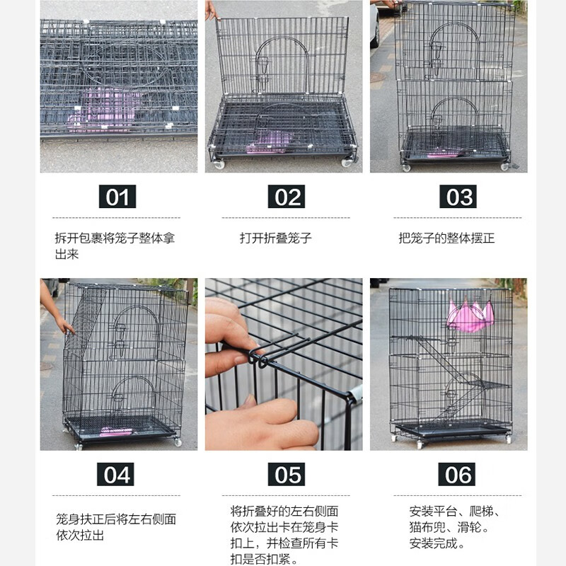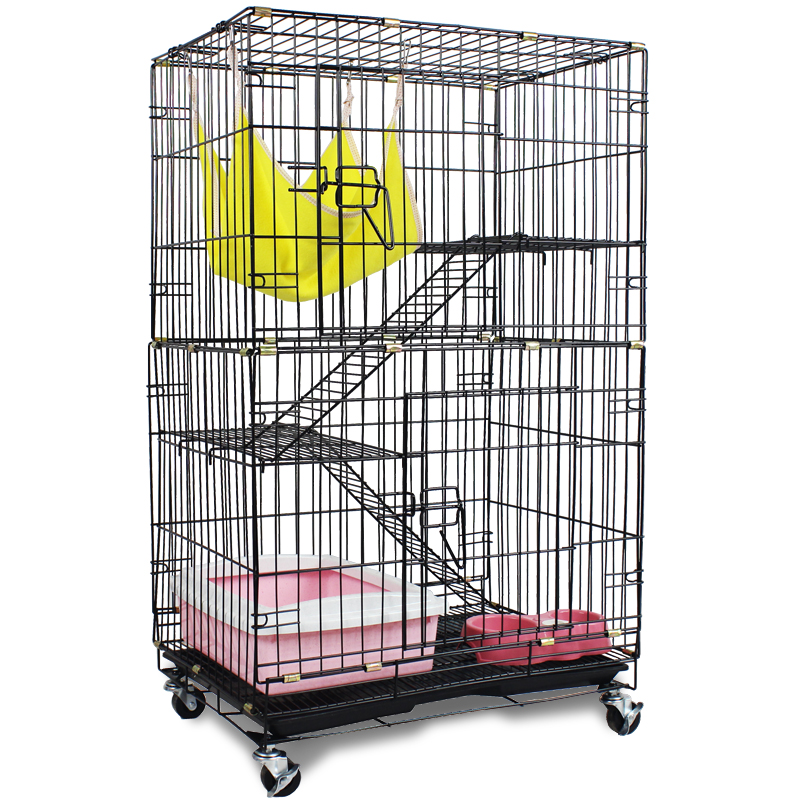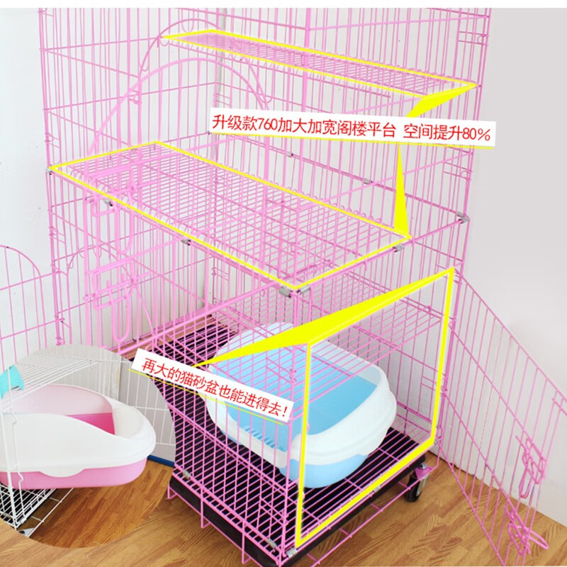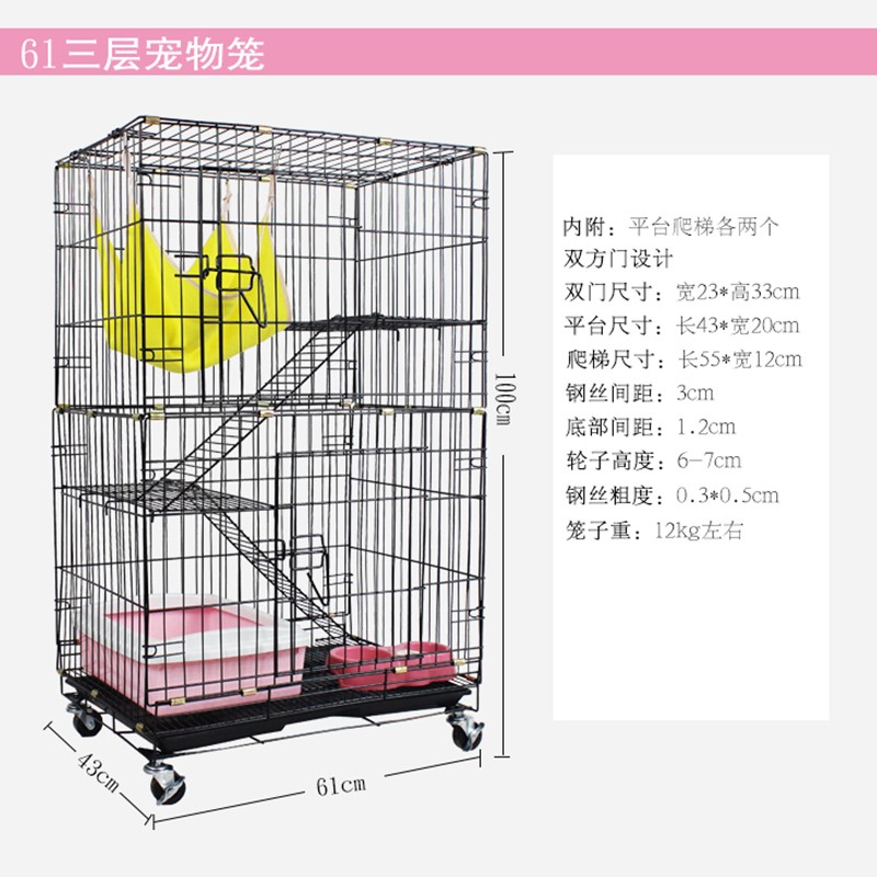 【空间升级 特大平台】猫笼 加粗加密折叠双层三层四层猫笼子猫别墅大号宠物笼子猫咪用品 白蓝粉颜色随机小三层双方门 61*43*100cm
