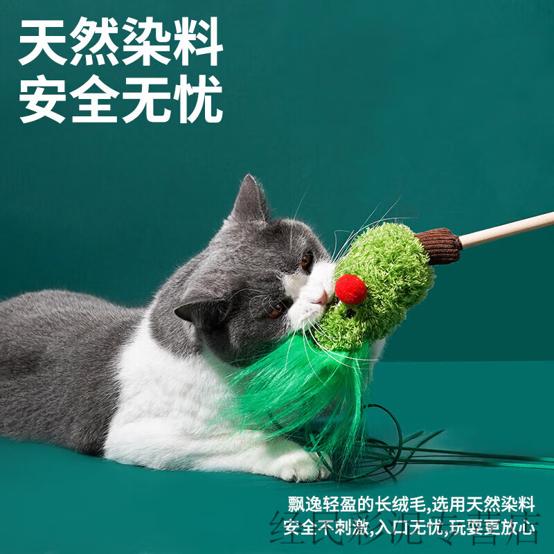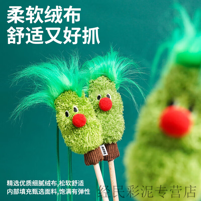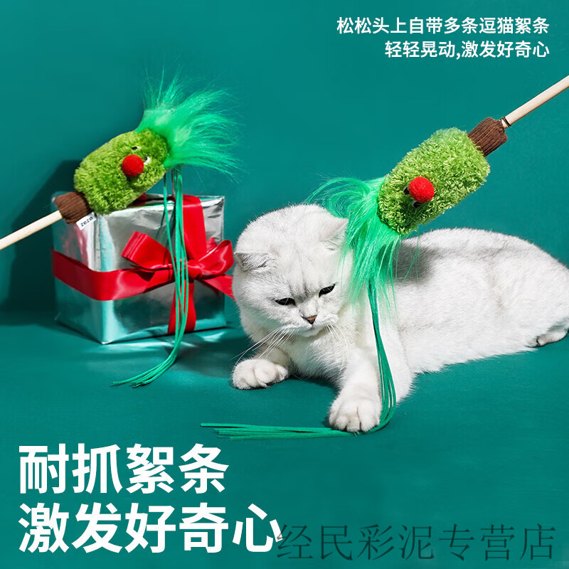 zeze树精逗猫棒宠物自嗨解闷猫玩具幼猫长杆耐咬毛绒猫咪用品 圣诞树精逗猫棒