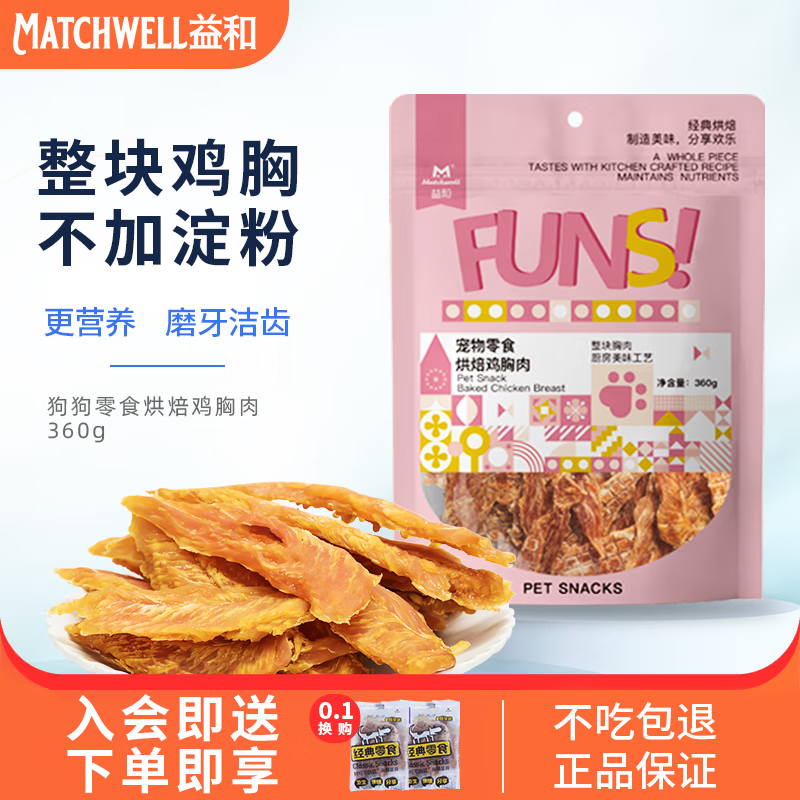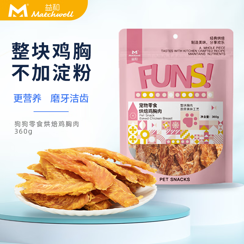益和(MATCHWELL)狗零食小型犬烘焙鸡肉干宠物鸭肉干泰迪幼犬磨牙棒大型犬奖励 烘焙鸡胸肉360g