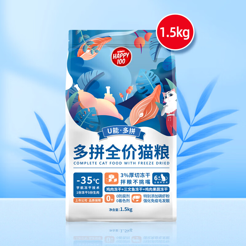 顽皮(Wanpy)冻干双拼猫粮10斤成猫幼猫流浪猫全阶段鲜肉营养发腮猫食3斤 三拼冻干粮3.斤【鸡肉 三文 鸡肉 0.g 以拍下规格为准