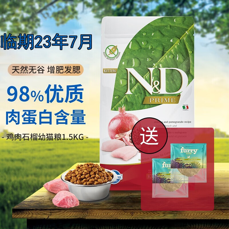 法米娜【飞萌标】Farmina猫粮意大利进口成猫幼猫精华无谷增肥发腮 幼猫鸡肉石榴1.5kg丨2023年7月