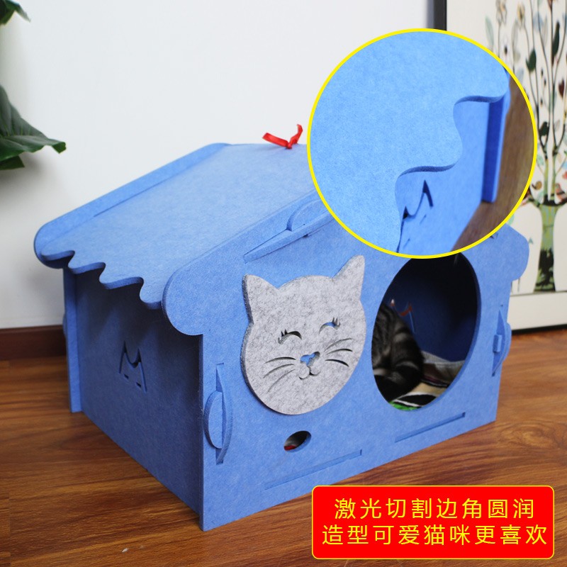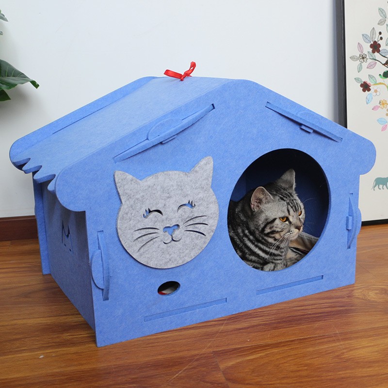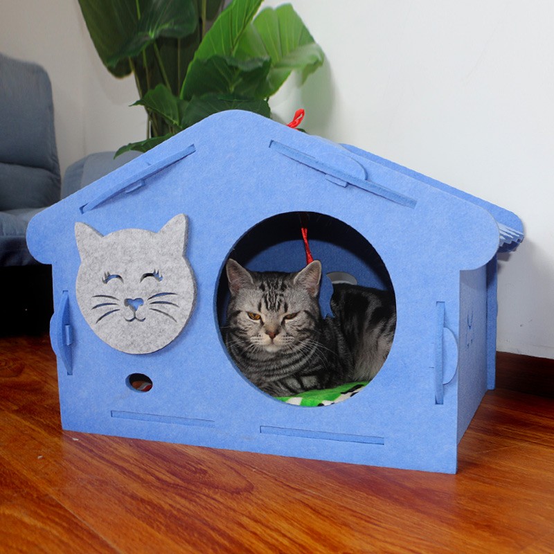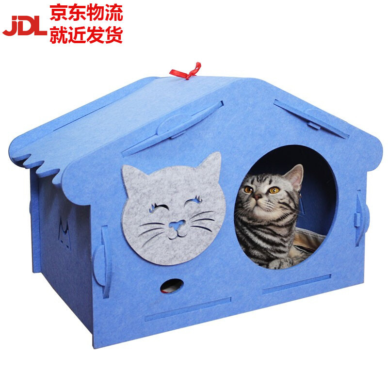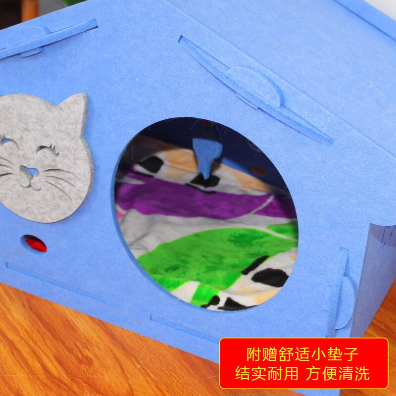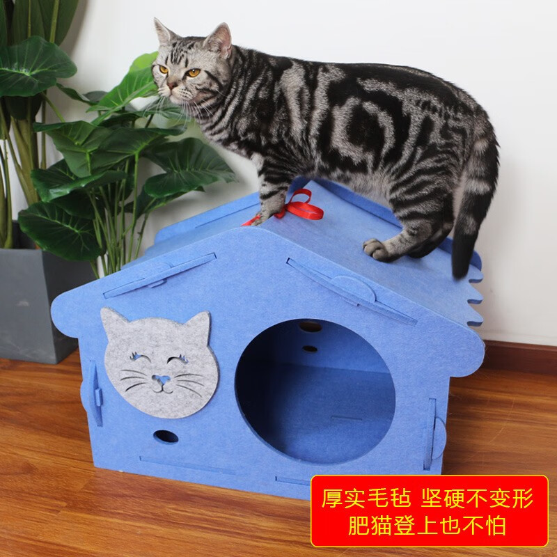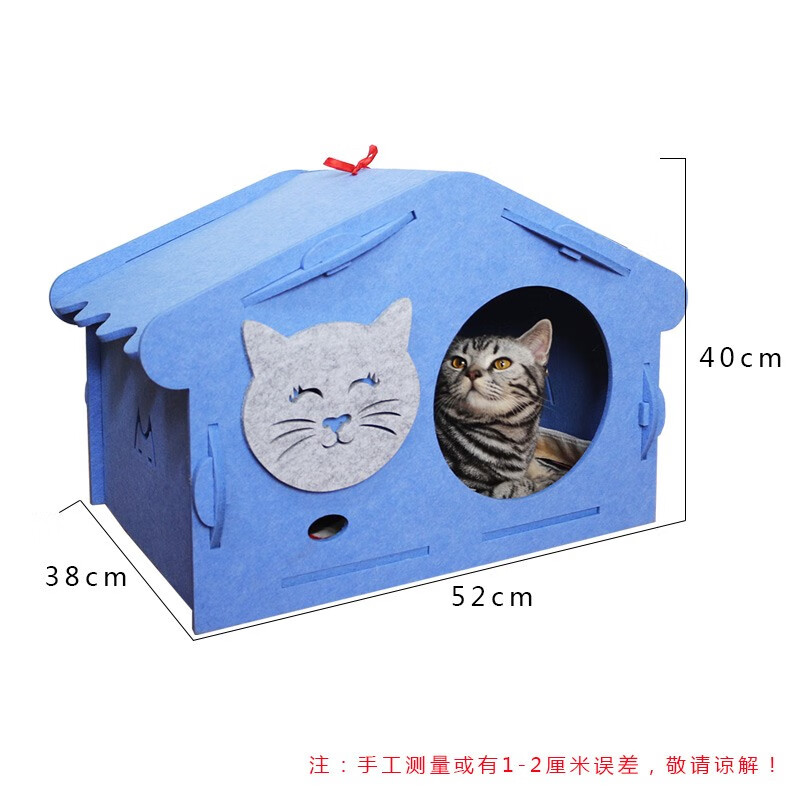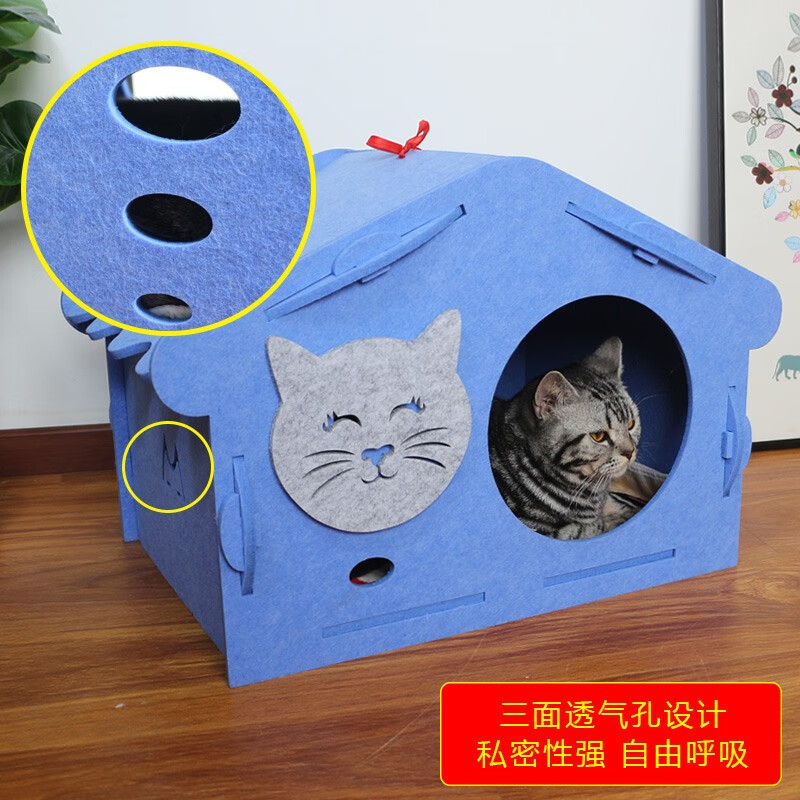 贝尼宠 猫窝保暖蒙古包拖鞋猫屋猫房子猫别墅深度睡眠网红款蛋挞窝狗窝狗房子 组装蓝色大号猫房子春夏秋20斤内