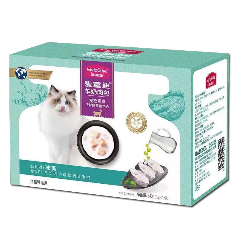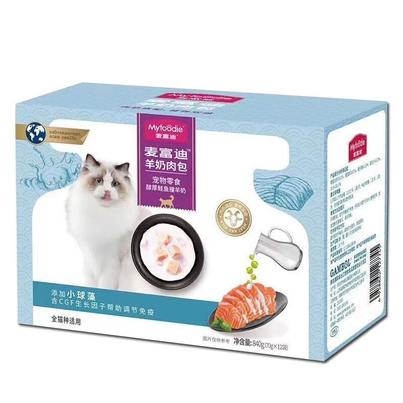 麦富迪(MYFOODIE)猫零食妙鲜包羊奶肉包宠物猫湿粮成幼猫通用70g*12 鲭鱼撞羊奶70*12袋