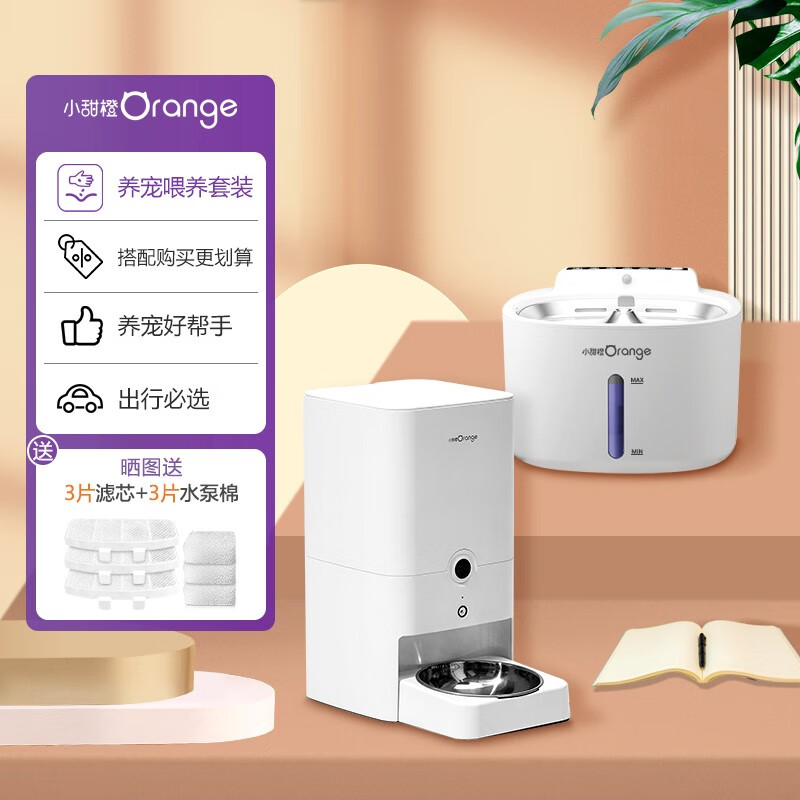 小甜橙宠物饮水机 紫外线杀菌 不插电猫咪自动喝水器智能猫狗无线杀菌 pro3000 可视喂食器,远程逗宠