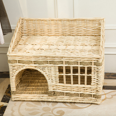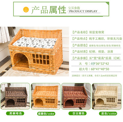 猫窝藤编夏季别墅猫屋四季通用宠物窝猫房子封闭式猫笼狗窝可拆洗