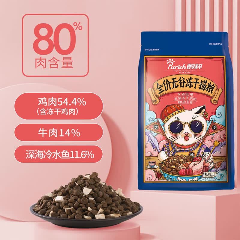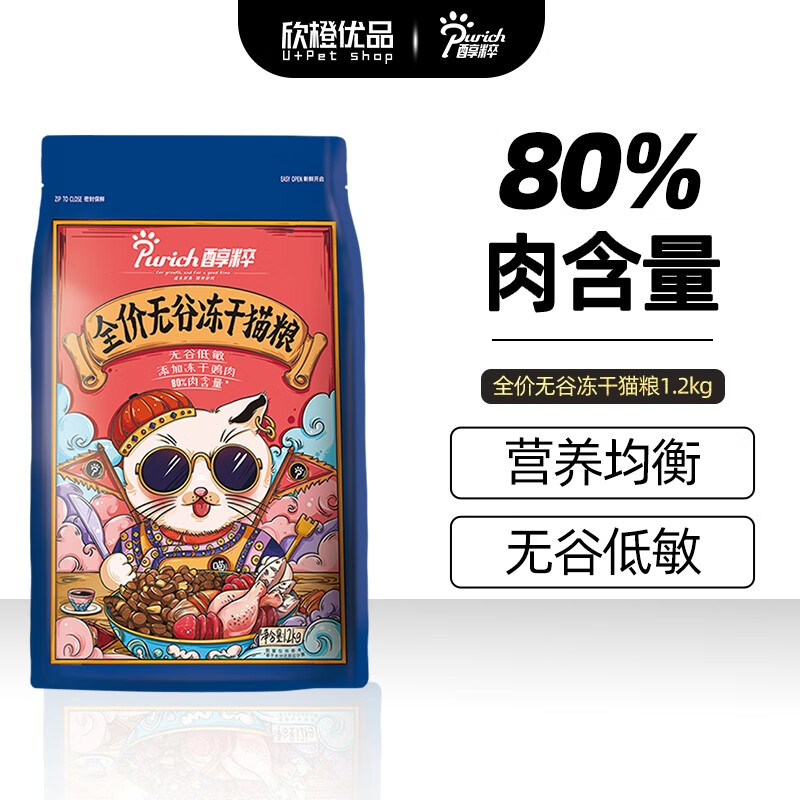 醇粹(Purich)黑标猫粮全价冻干猫粮成猫幼猫通用纯粹85%肉含量全价冻干 无谷冻干1.2kg