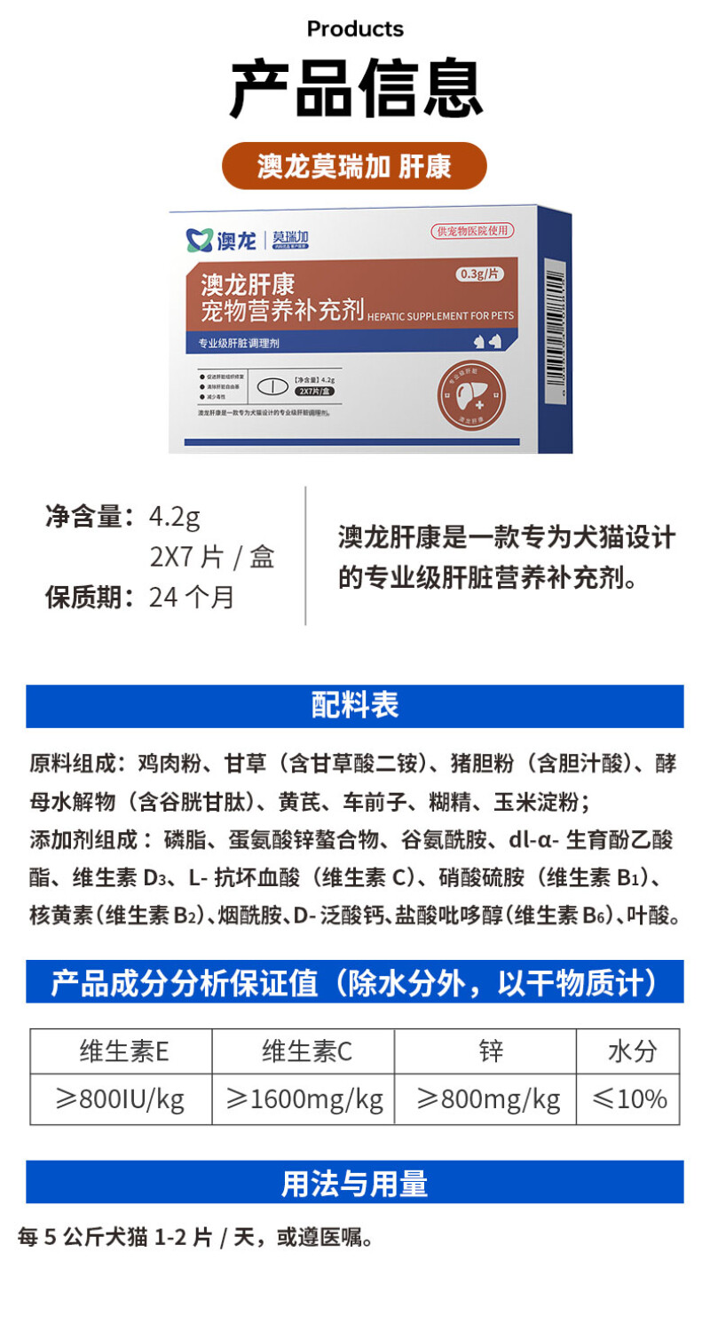 雷米高 澳龙莫瑞加肝康宠物营养补充剂4.2g 猫犬通用肝脏调理剂