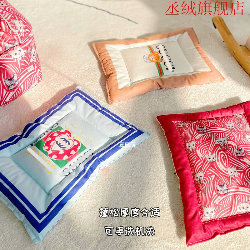 【闪电发货】猫垫子冬天用 机洗狗狗温暖窝垫宠物猫睡垫四季通用 咖色小熊 小号 33x43 适合身长43CM内猫狗