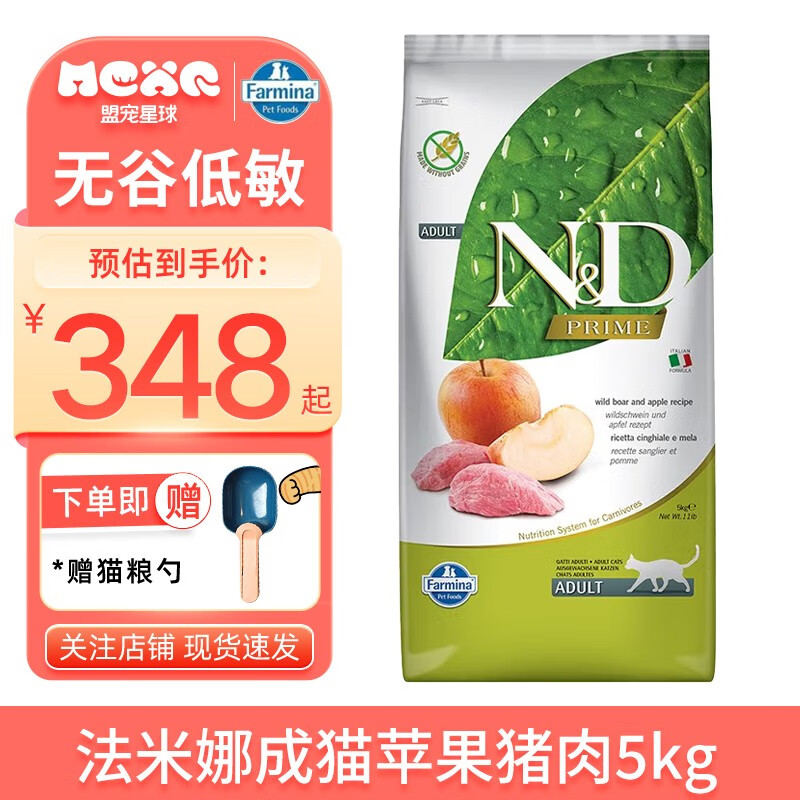 法米娜无谷低敏高蛋白成猫粮苹果猪肉鲱鱼甜橙鸭肉南瓜 苹果猪肉12月到期 5kg
