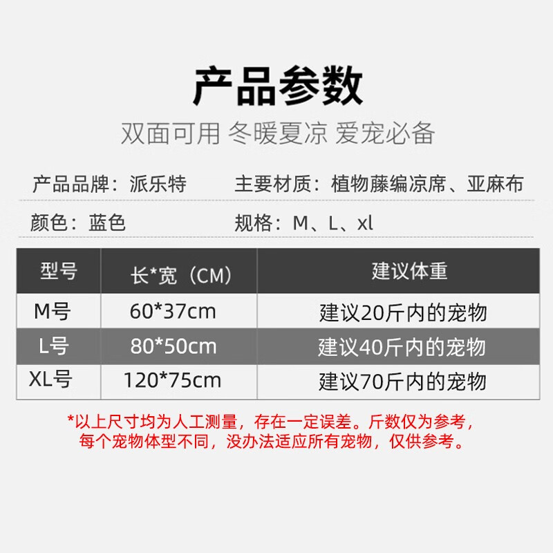 派乐特 宠物狗狗垫子猫咪泰迪法斗中小型犬宠物凉席床透气L