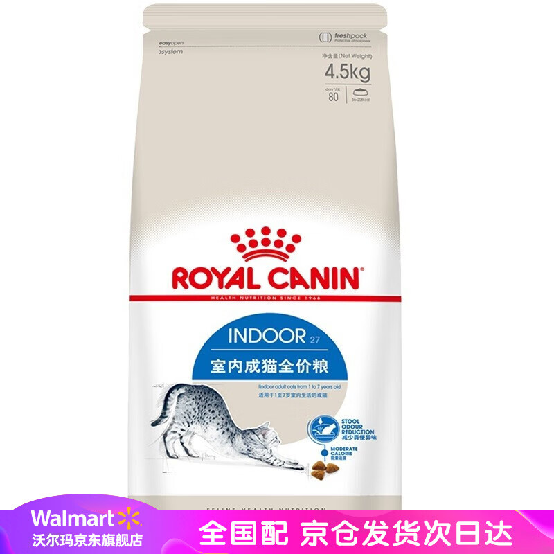 皇家猫粮 室内成猫粮 I27 通用粮 12月以上 4.5KG 高易消化蛋白 维持健康体重