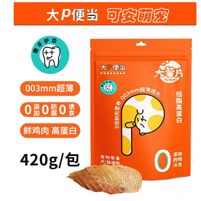 大P便当猫粮鸡胸肉片猫狗补钙营养风干烘焙宠物零食成猫幼猫狗磨牙棒洁齿 (纯鸡肉片)420g(约40片) 独立小包装