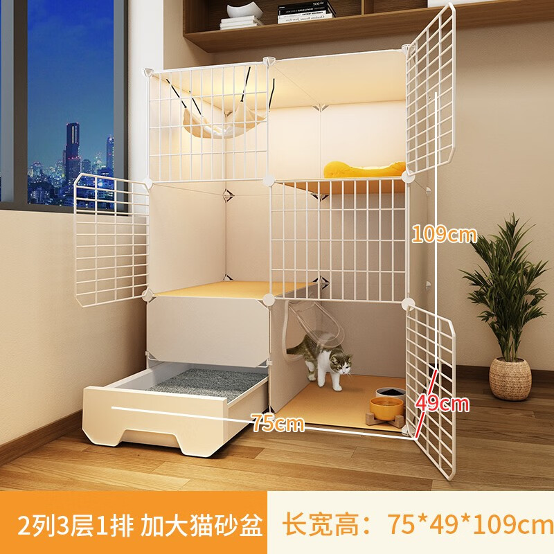 爱咪宠猫笼子家用猫窝别墅带厕所一体室内带猫砂盆超大号幼猫窝舍屋猫笼 加大猫砂盆【75*49*109】除臭球 饮食款 窝 碗 猫砂盆带铲 除臭球
