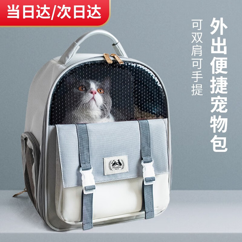 COCS 猫包外出便携大号宠物包手提式斜跨大容量透气折叠车载猫箱狗笼子猫袋出行用品 【手提双肩】-浅灰色 15-20斤以内