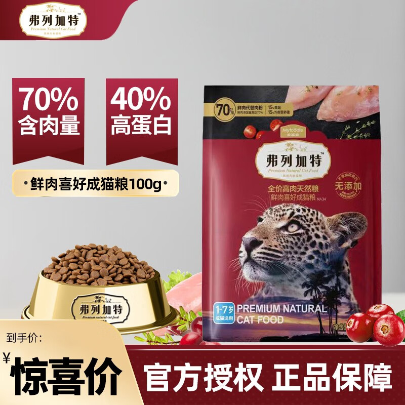 弗列加特全价生骨肉主食冻干猫粮试吃装 全价高肉喜好成猫粮100g