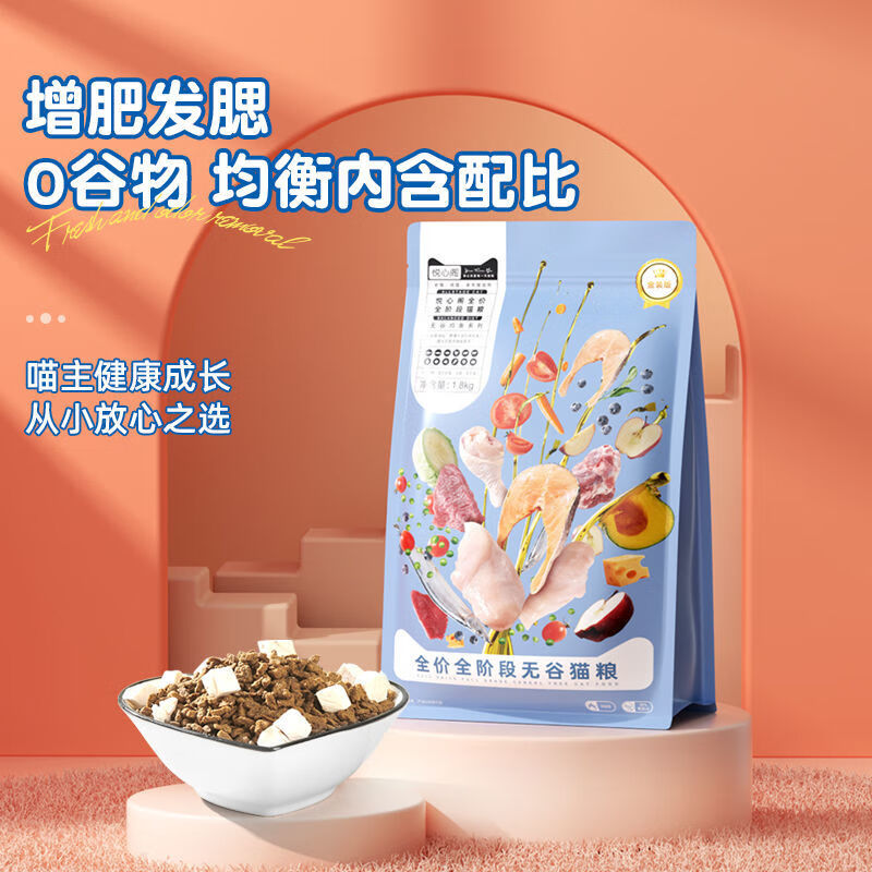 鱼七秒猫粮全阶段天然无谷全价成猫幼猫奶糕蓝猫英短营养增肥发腮 无谷全阶段猫粮3.6斤*2包