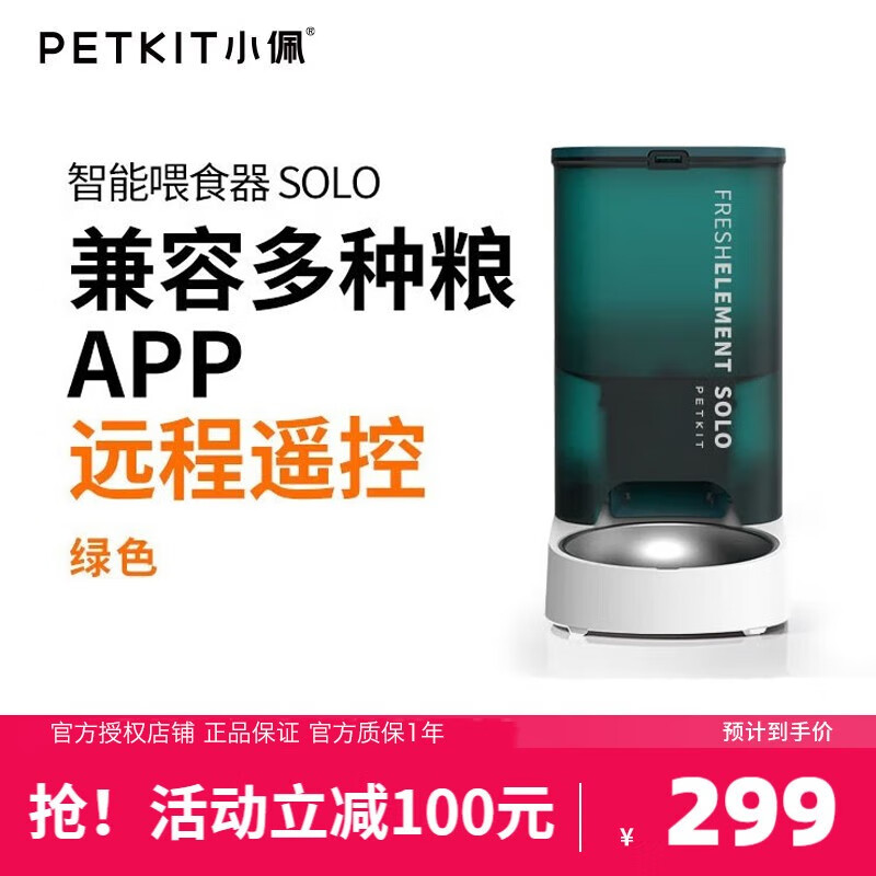 小佩智能猫咪自动喂食器猫SOLO猫狗粮冻干定时投食远程控制储粮桶 SOLO喂食器绿色-3L