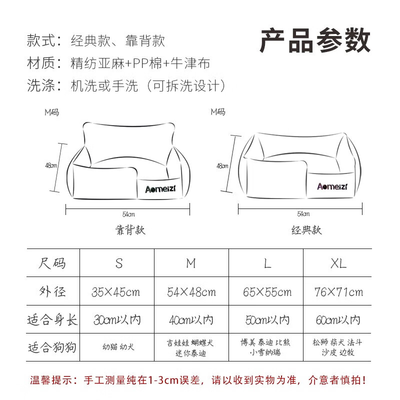 汪汪部落狗窝四季通用冬季可拆洗狗垫子睡觉用中小型狗狗床宠物柯基用品 红色 M码 (54*48cm)