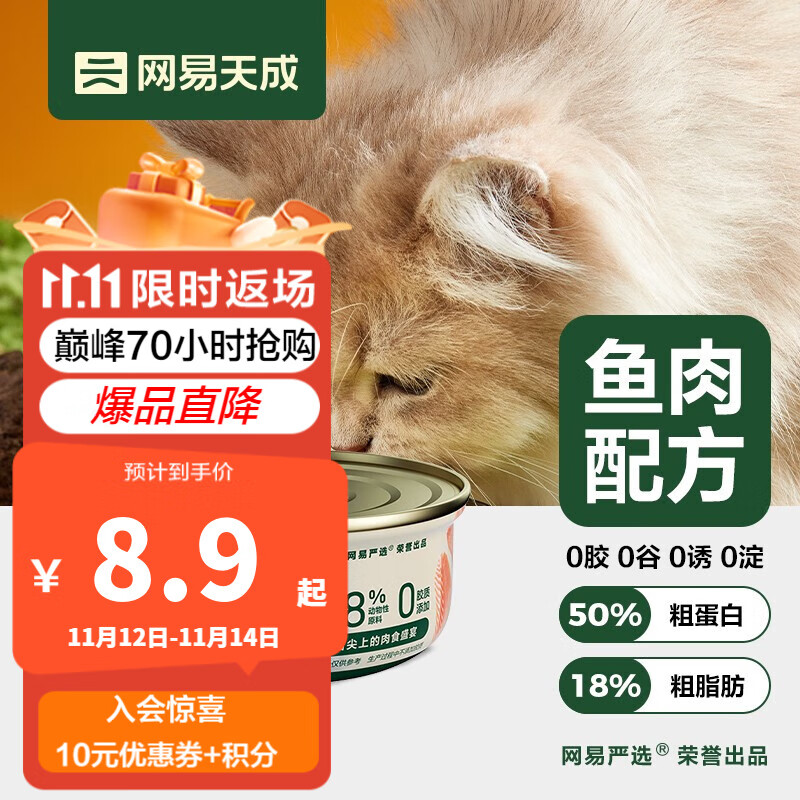 网易天成宠物猫罐头全价猫用主食罐猫粮猫湿粮美味好吸收成猫幼猫主食 三文鱼罐85g