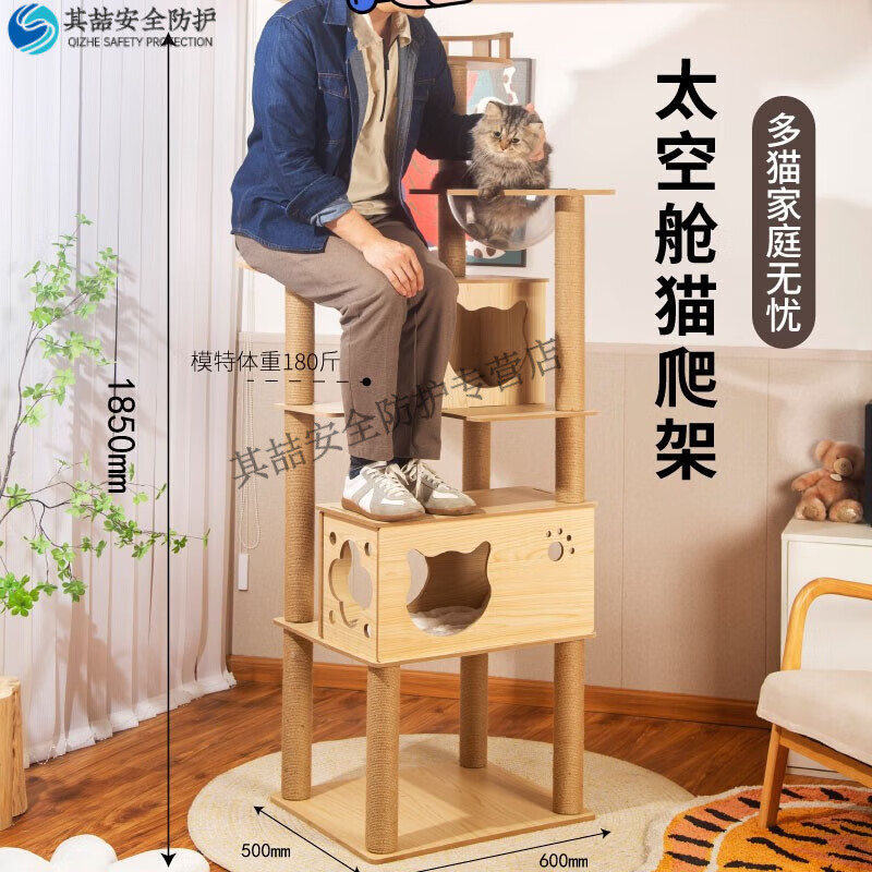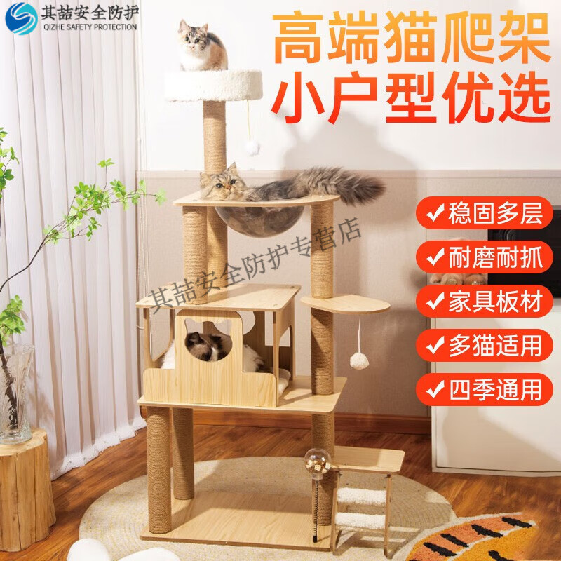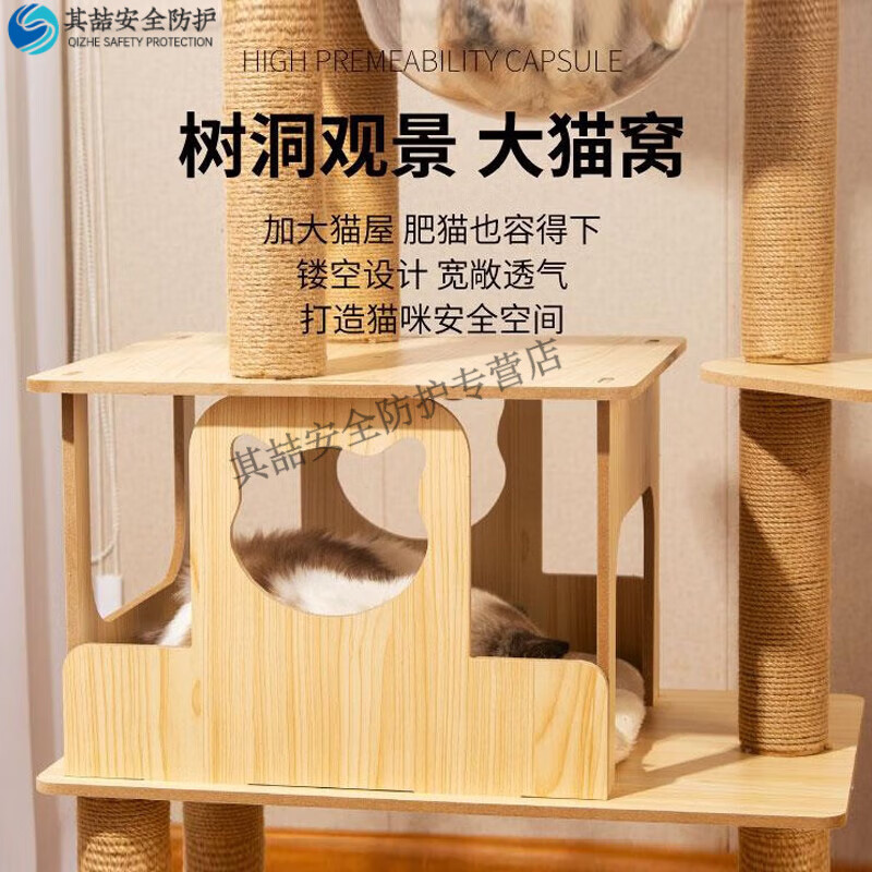 爪子空间猫爬架小户型实木猫爬架带窝猫抓柱大型猫架猫窝一体稳固太空舱英短猫树猫架子猫抓架
