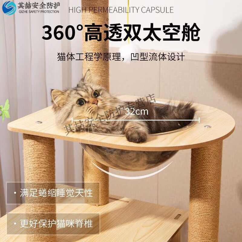 猫爬架小户型太空舱实木猫架猫窝猫树一体猫爬架子四季通用猫咪玩具立式猫抓板剑麻磨爪器猫猫跳台 【非主图款】见尺寸图双瞭望台