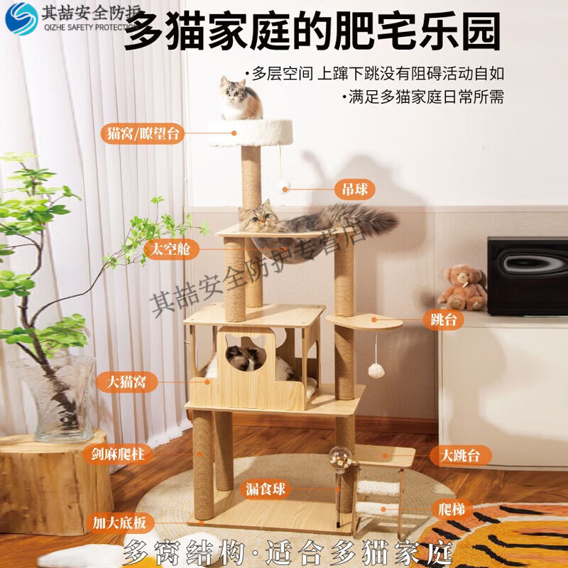 猫爬架子猫窝猫树一体实木猫抓板剑麻猫架笼子高层城堡跳台太空舱 【家庭-豪华乐居】喵仙居M-09