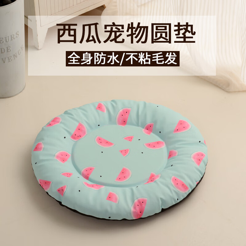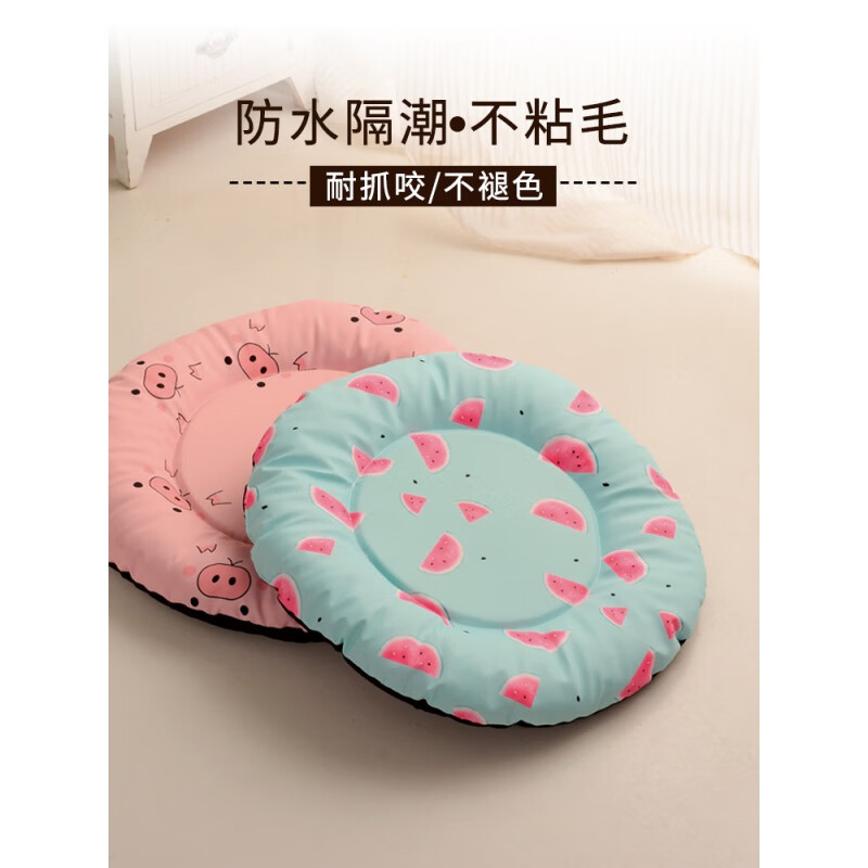CLCEY狗狗垫子睡垫圆形狗窝四季防水不沾毛宠物用品睡觉用地垫猫窝垫子 清凉西瓜-圆形 S-小型
