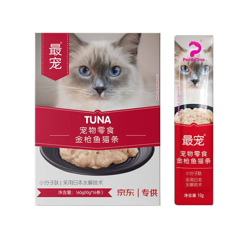 最宠(Paddy Time)猫零食金枪鱼猫条160g(10g*16)宠物猫湿粮流质成年幼猫罐头猫咪肉条布丁营养护肠胃去毛球