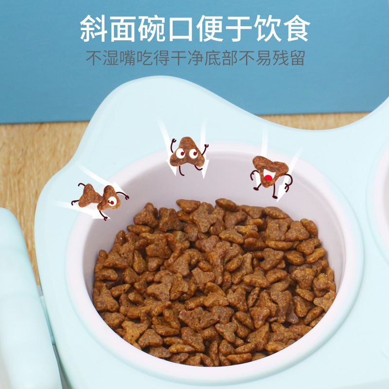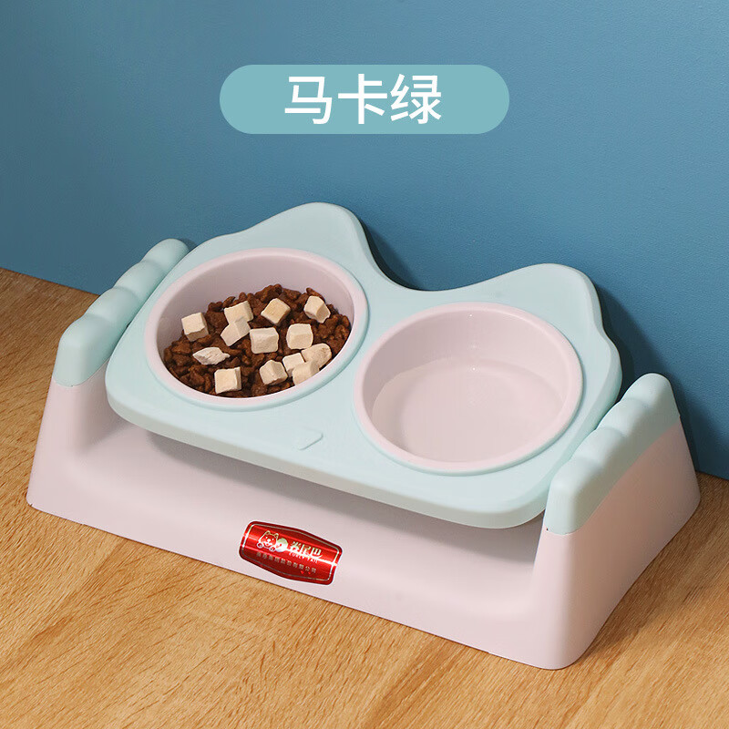 卷尾巴猫碗猫食盆狗碗狗盆猫咪双碗保护颈椎可爱防打翻宠物碗用品 马卡绿-15°保护颈椎
