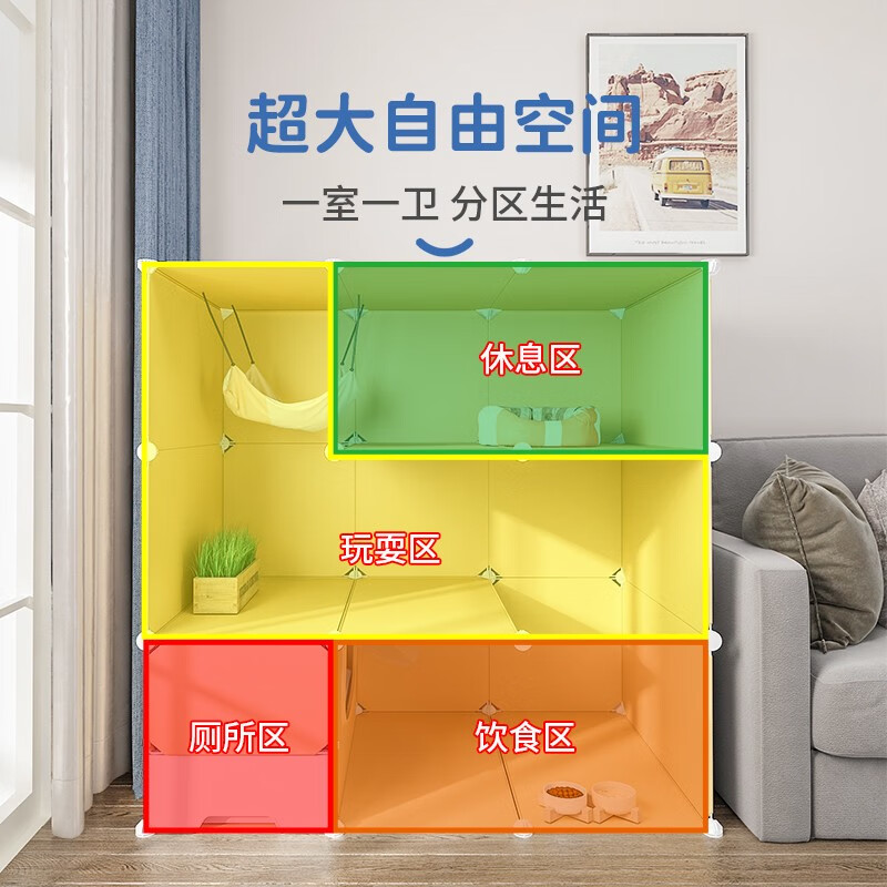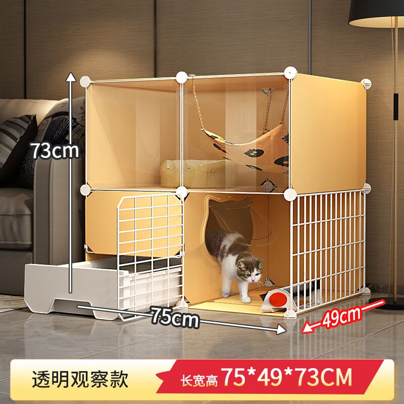 蔻丝猫笼子带厕所一体封闭式猫砂盆猫笼子家用猫别墅超大号猫窝舍猫柜 高透款【2列2层1排】内置猫砂盆 至尊款:自动续水猫碗 豪华款