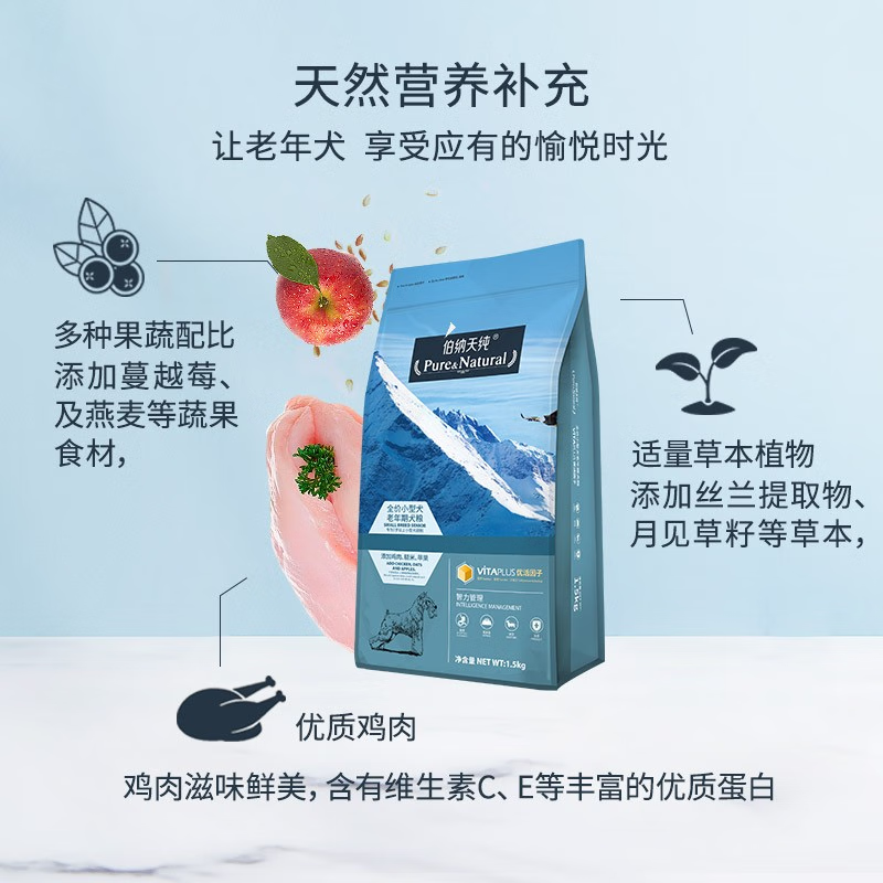 伯纳天纯小型高龄犬专用狗粮1.5kg贵宾比熊博纳天纯泰迪老年犬粮 小型老年犬粮1.5kg 1.5kg