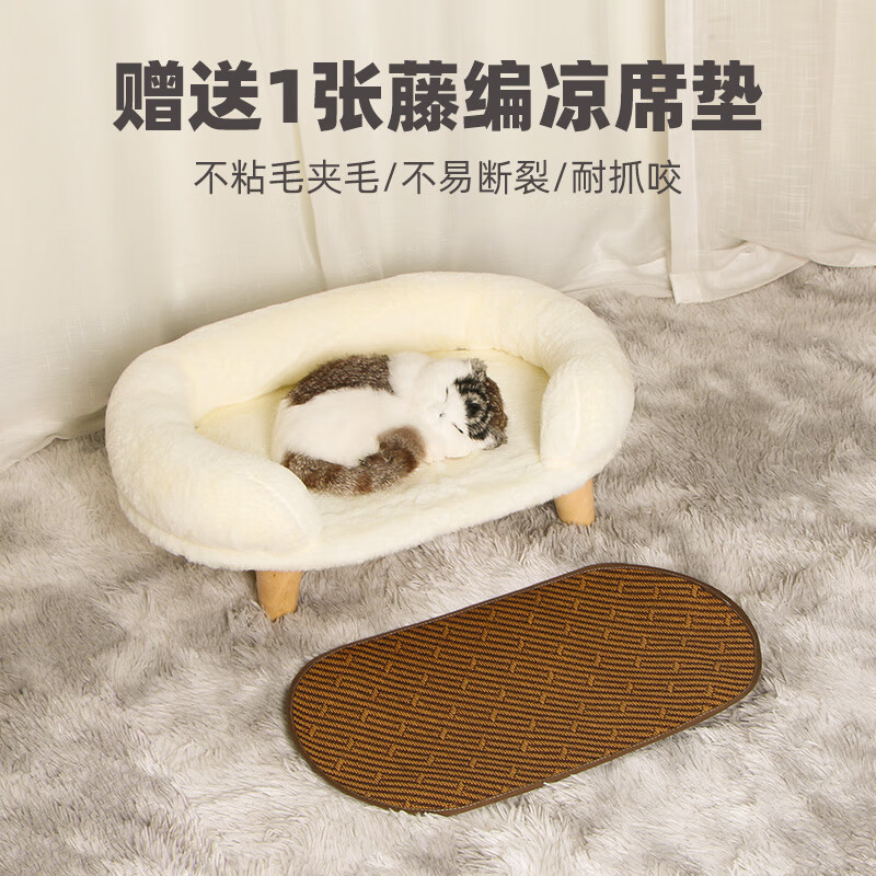 沙发式狗窝猫窝狗窝四季通用猫床垫子冬季保暖小兔毛绒宠物沙发狗狗睡觉床 白色_1张藤编凉席垫 S-小型