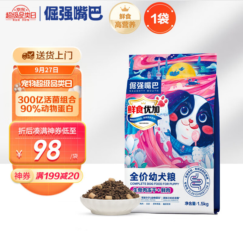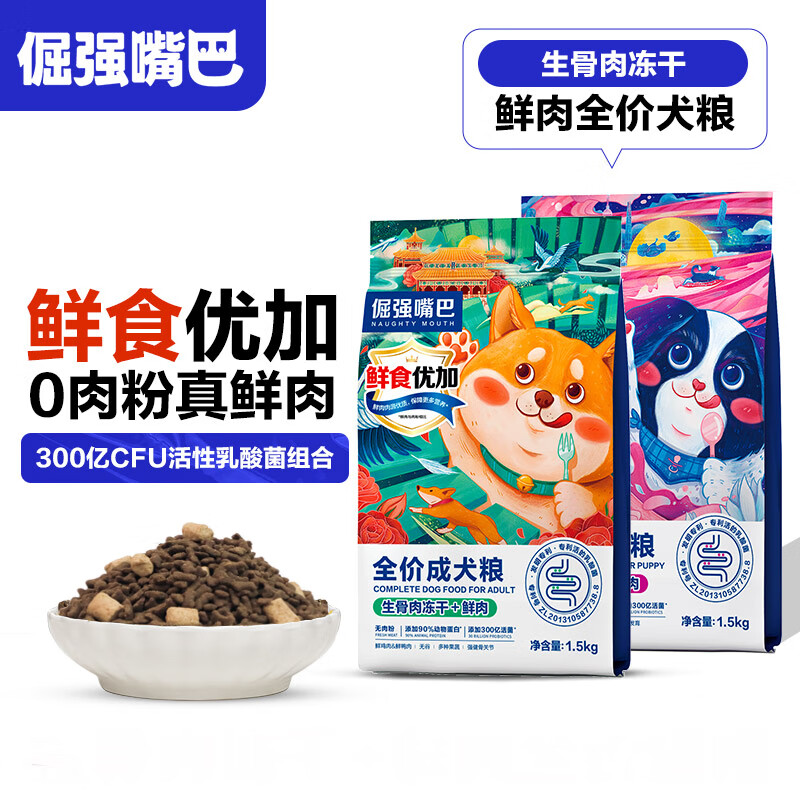 倔强的尾巴鲜食优加冻干鲜肉高蛋白狗粮鸡肉味1.5k泰迪比熊金毛拉布拉多犬粮