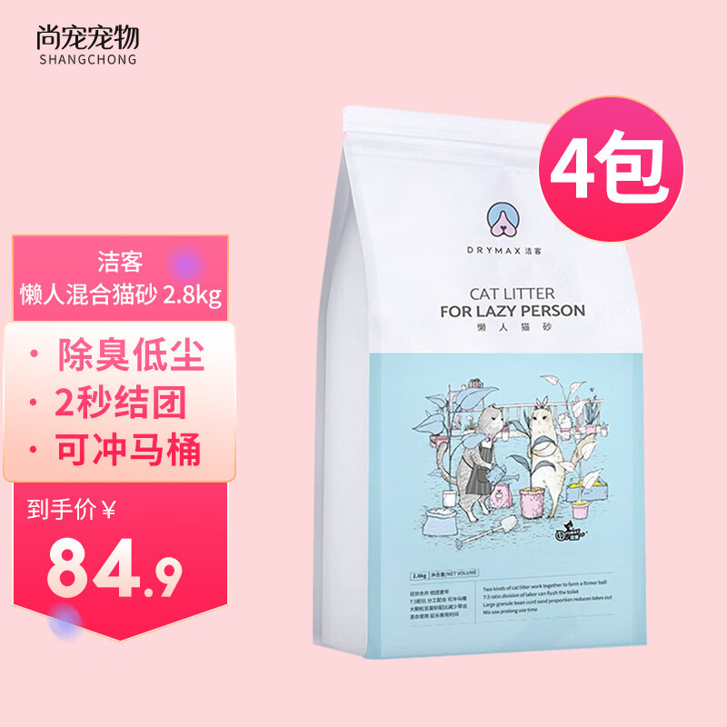洁客猫砂 懒人猫砂 奶香绿茶豆腐猫砂混合猫砂除臭无尘易结团可冲马桶 懒人混合猫砂 2.8kg*4包