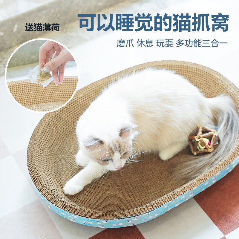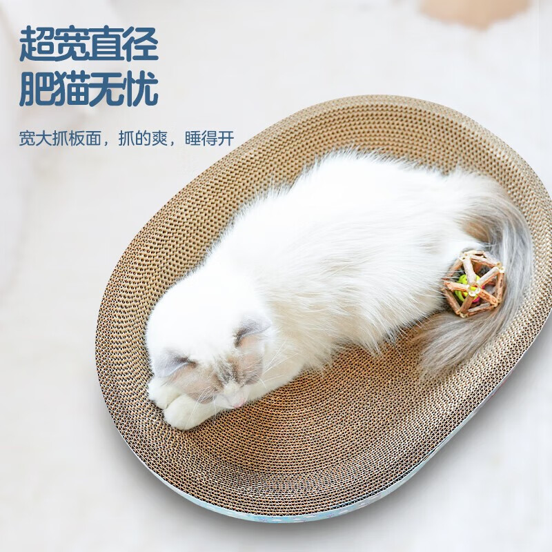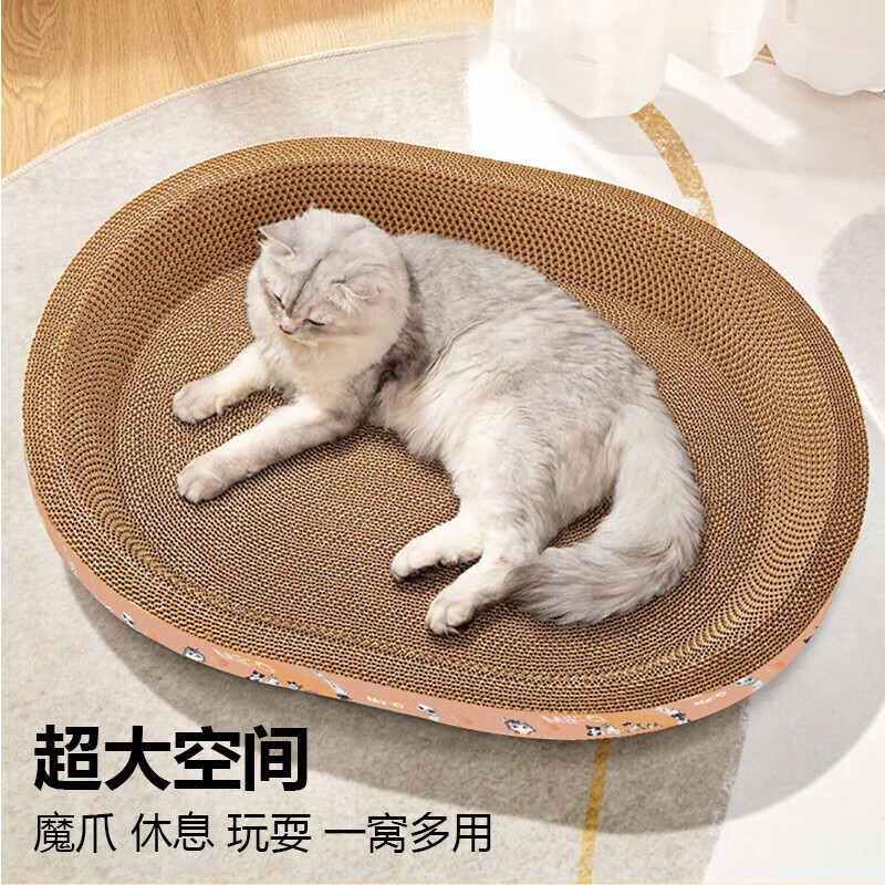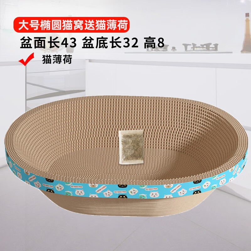 猫抓板猫玩具板猫窝一体圆形耐磨不掉屑猫爪板大号瓦楞纸盆猫玩具 椭圆大号猫抓板 猫薄荷